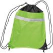 Stahovací batoh červené barvy z netkaného materiálu sreflexním pruhem na přední straně. Rozměry: 35 x 0,4 x 44,5 cm.