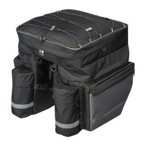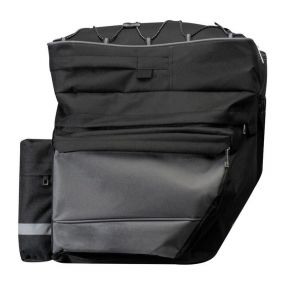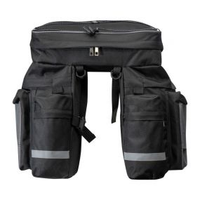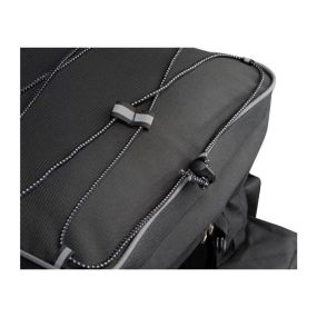 Vysoce kvalitní, prostorná taška na kolo, která se připevňuje k nosiči. Má mnoho funkcí jako elastické popruhy a několik přihrádek pro uložení. Rozměry: 43 x 38 x 41 cm